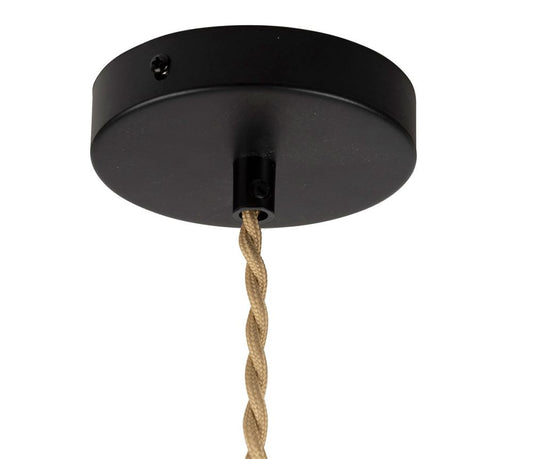 Suspension douille noire - 110cm câble torsadé corde naturelle rosace