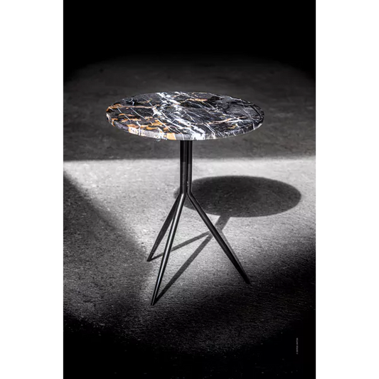 Table d'appoint DANA - marbre et métal - DIA 40 x H 47 cm - brun