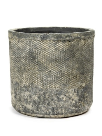 Cache-pot en grès - Ø 17,5 x H 23 cm - Finition poudrée et brune