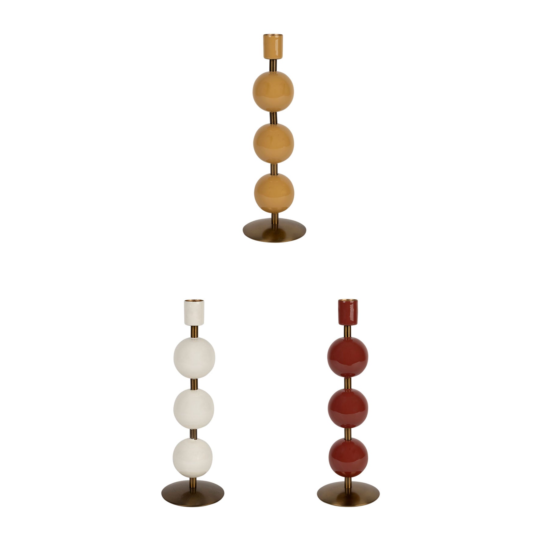 Apportez une touche de modernité et d’élégance à votre intérieur avec le bougeoir à boules émaillées Côté Table. Son design géométrique, composé de trois sphères en céramique émaillée montées sur une base en métal doré, en fait une pièce à la fois contemporaine et chaleureuse.
