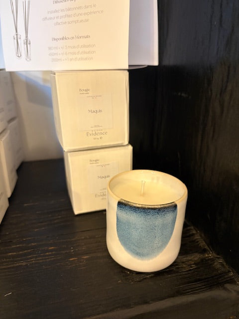 Coulées à la main en France, elles dévoilent des parfums délicats et des contenants en céramique émaillée aux teintes naturelles et apaisantes. Chaque pièce est unique, révélant les nuances subtiles du travail de la terre et du feu.