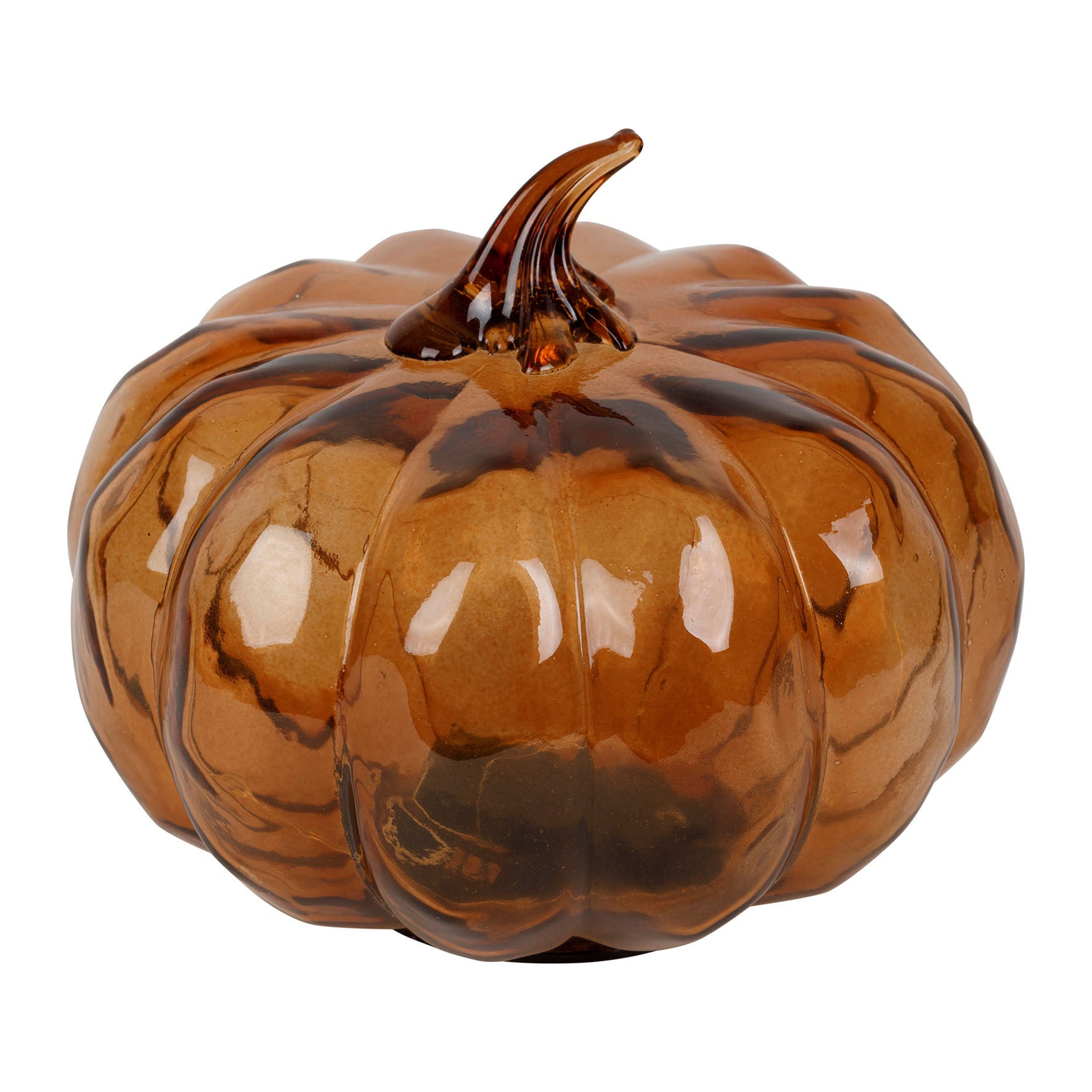Sublimez votre décoration d’automne avec cette élégante citrouille décorative en verre ambré.