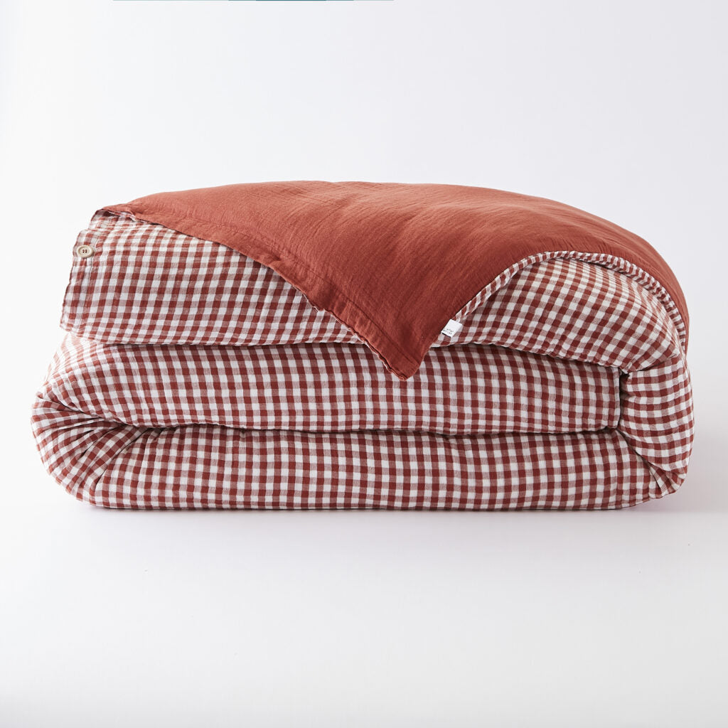 Housse de couette réversible Vickie – 260 x 240 cm – Gaze de coton tissée Terracotta