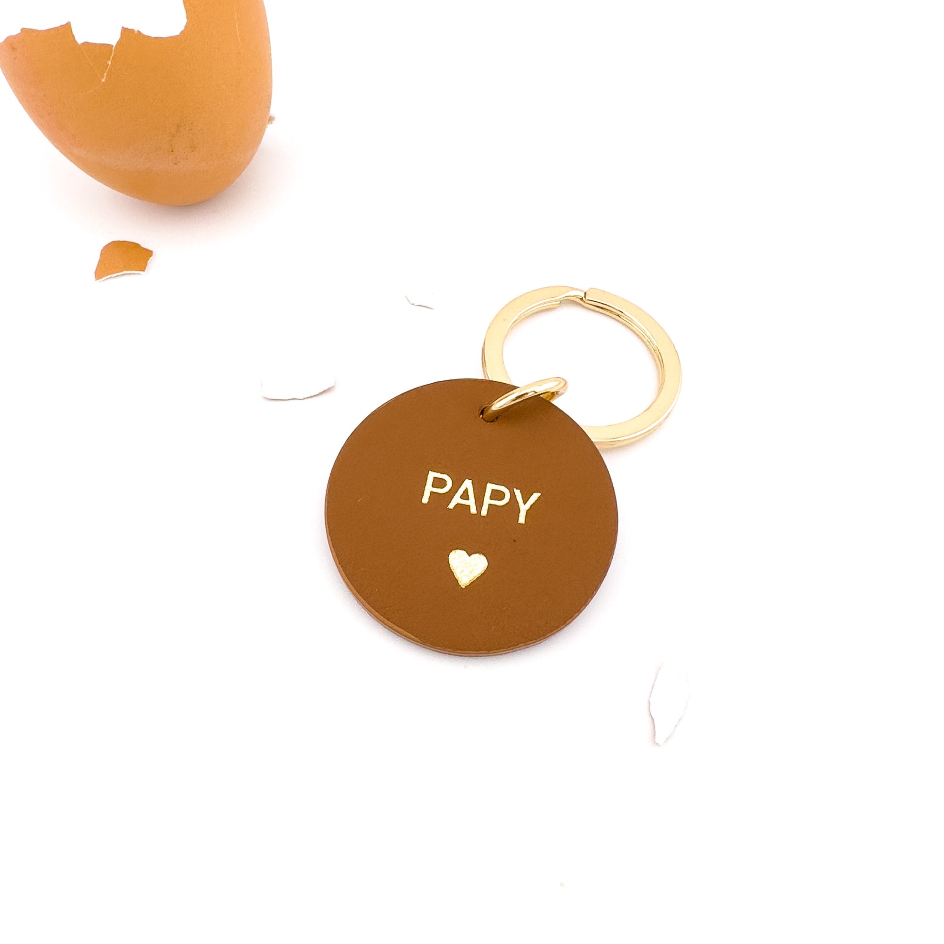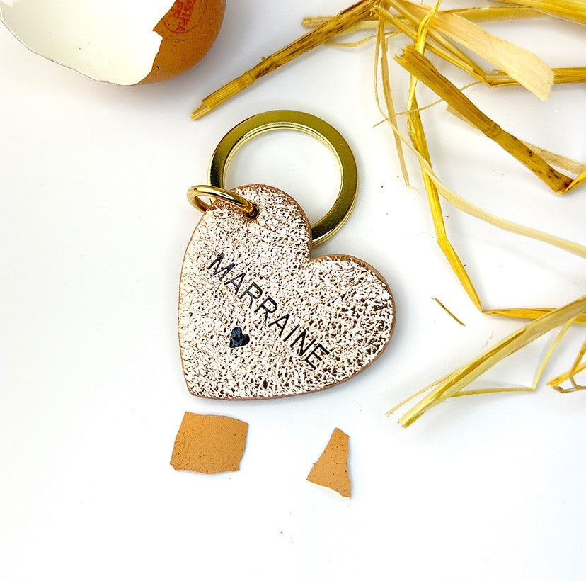 De jolis porte-clés en cuir en forme de cœur ou de rond, avec une écriture dorée délicate pour déclarer tout votre amour aux personnes chères à votre cœur.