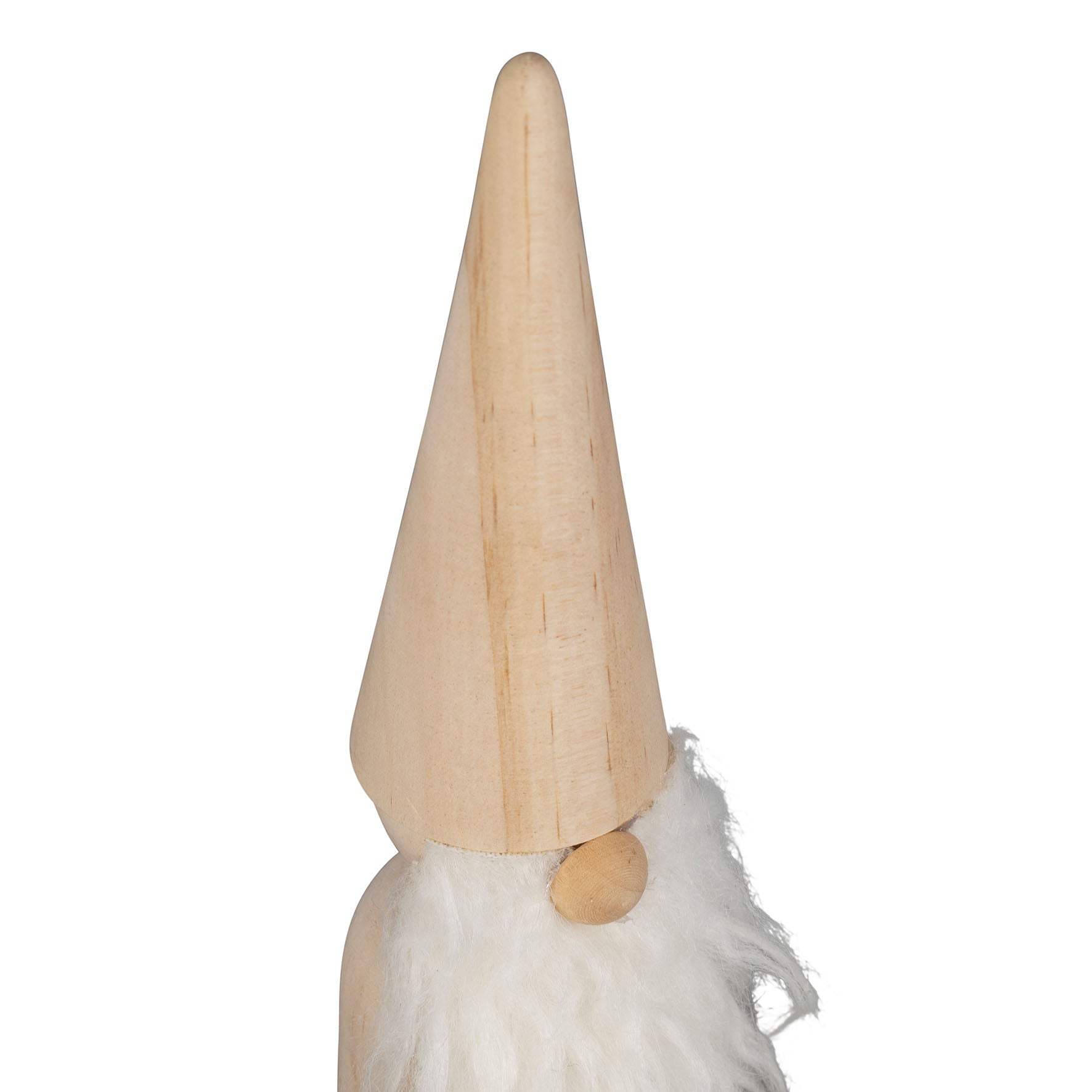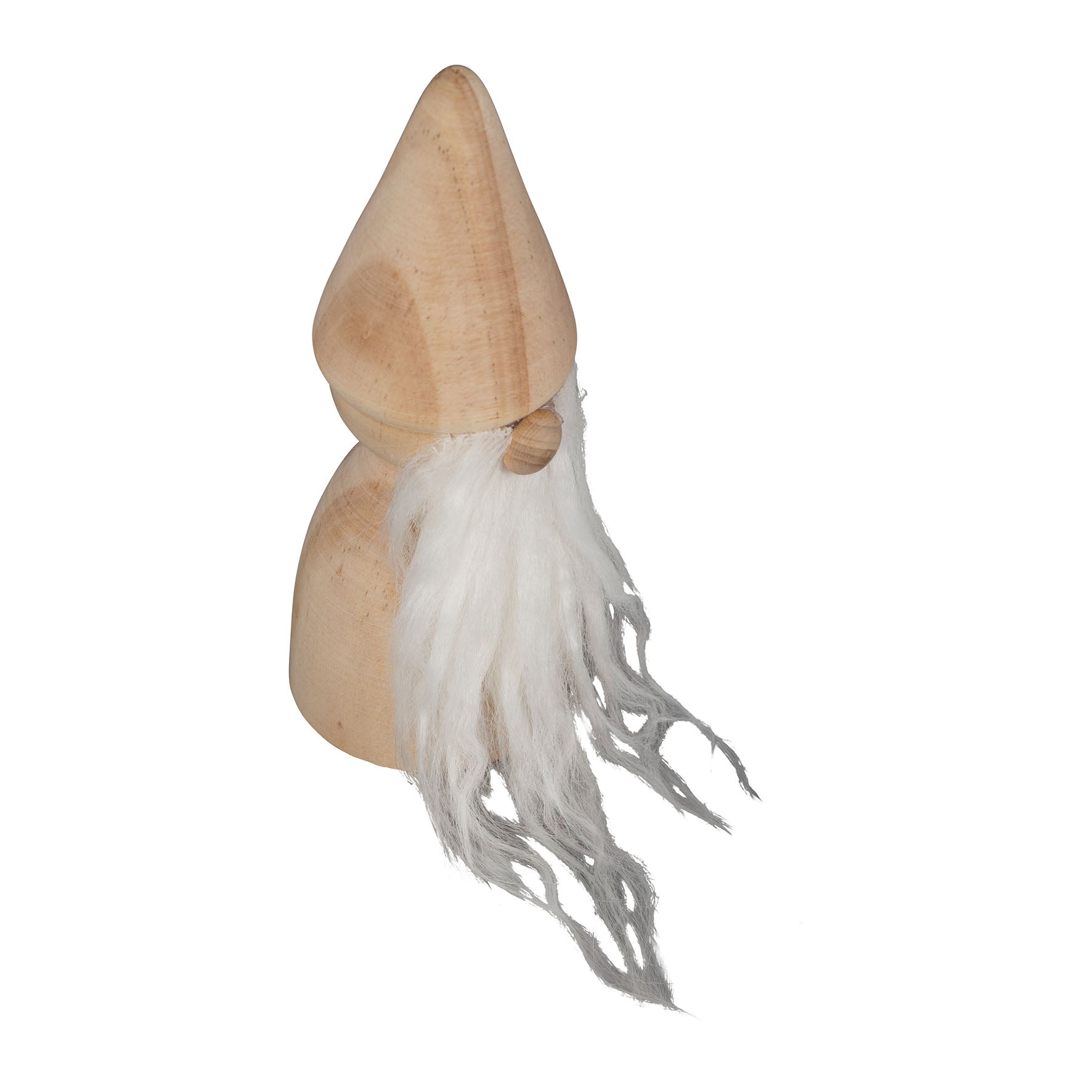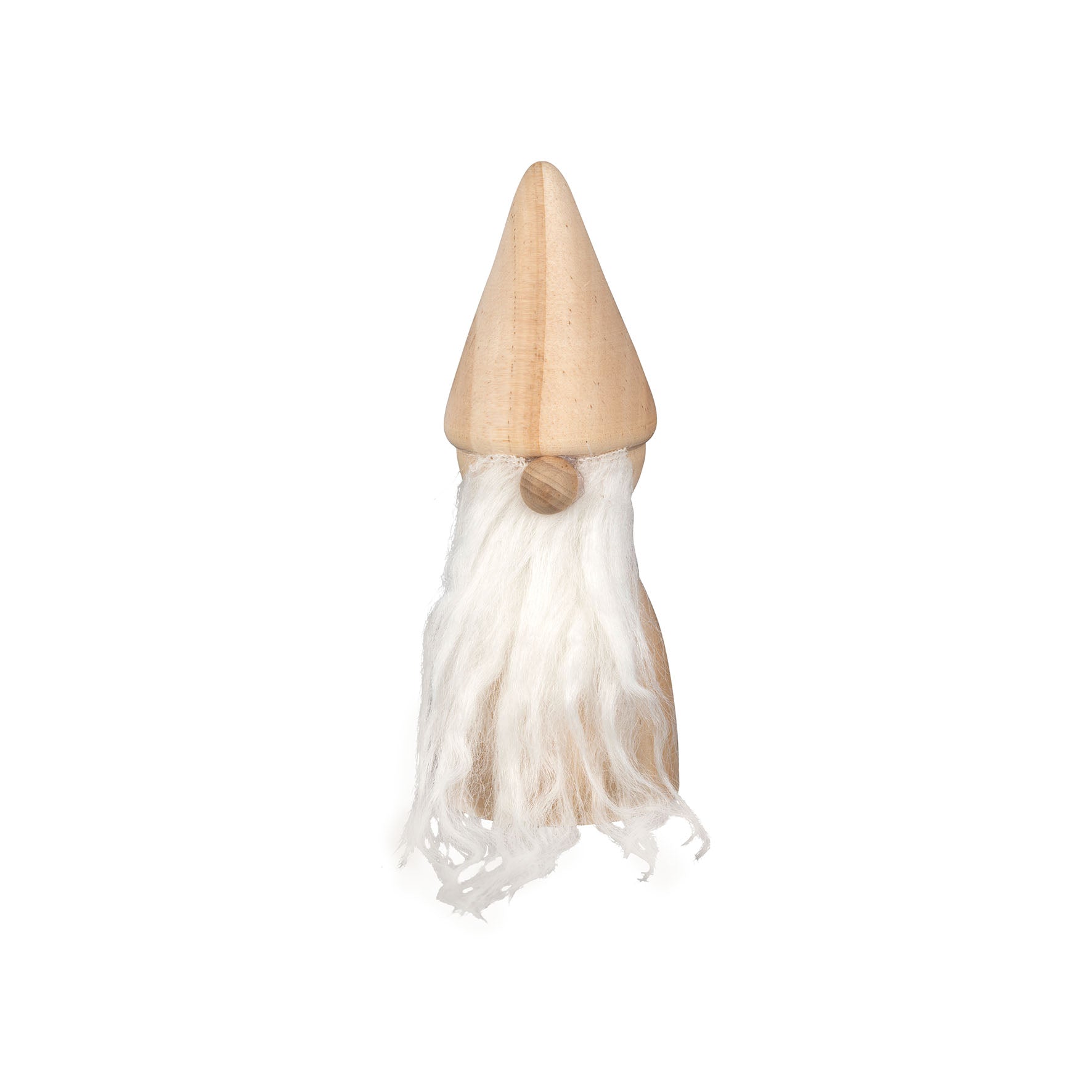 Sa longue barbe blanche et son chapeau pointu lui donnent un air joyeusement hivernal, parfait pour compléter une ambiance de Noël douce et naturelle. Réalisé en bois massif, il s’intègre harmonieusement dans une déco scandinave, bohème ou rustique chic.